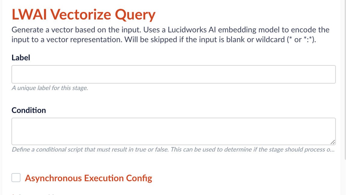 Fusion 5.9.15 introduces an LWAI Batch Vectorize Index Stage for AI pipelines. This works the same as the LWAI Vectorize Field stage but delivers faster indexing throughput because it processes your documents in batches before sending those documents to the next stage in your index pipeline. The LWAI Batch Vectorize stage can improve document indexing performance up to ten times the rate of the LWAI Vectorize Field stage. The LWAI Vectorize stage processes documents one at a time.